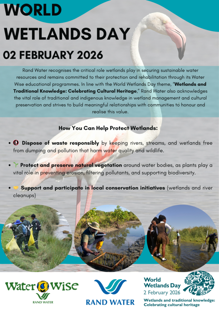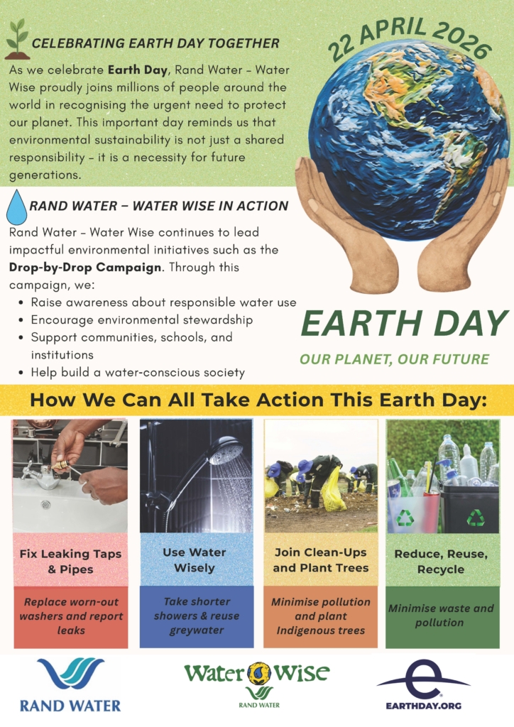 Water Wise is Rand Water’s environmental brand and is a campaign aimed at increasing awareness of the need to value water and to use it wisely. South Africa is a water stressed country, and water resources are under tremendous pressure from a growing population, ongoing development, pollution, wetland destruction, alien invasive plants and the effects of global warming and climate change.